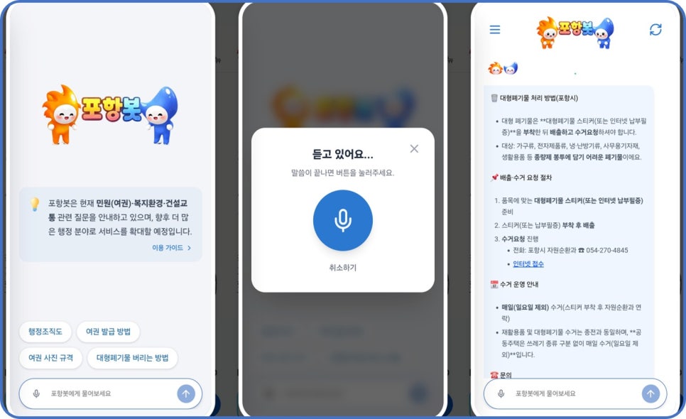 이번에 오픈한 포항시 챗봇은 클라우드 환경을 통해 제공되는 구독형(SaaS) 챗봇 서비스로, 기존 온프레미스 방식 챗봇이 가진 초기 구축 비용 부담과 장기 사업 기간, 유지관리의 한계를 보완한 것이 특징이다. 이를 통해 포항시는 보다 유연하고 지속 가능한 행정 챗봇 운영 환경을 확보하게 됐다.